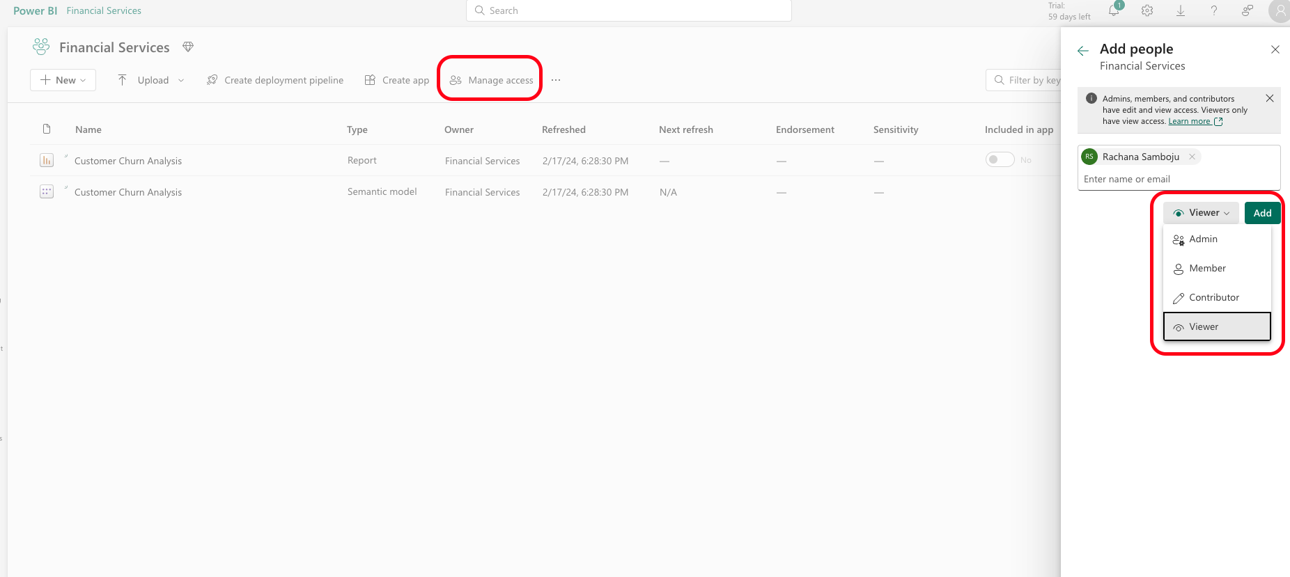 - Apart from assigning roles, you also need to manage user permissions for each workspace.